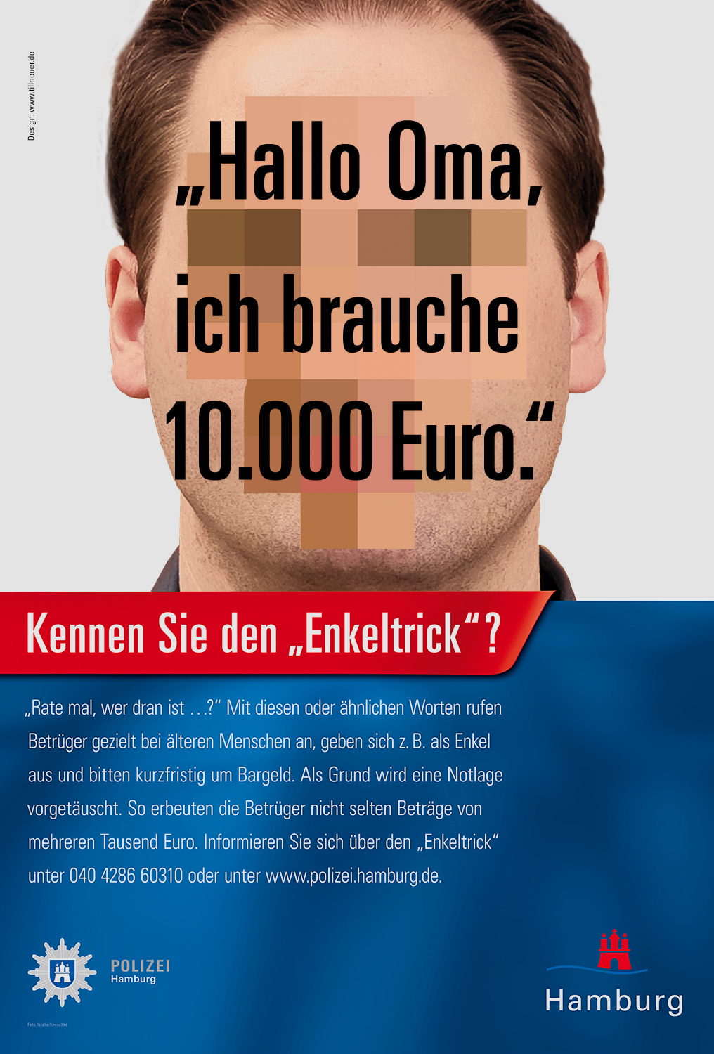 Die Abteilung LKA 21 Prävention und Opferschutz des Landeskriminalamtes Hamburg gibt in regelmäßigen Abständen Kampagnen zu den verschiedensten die Polizei betreffenden Themen in Auftrag. Themen wie Einbruchschutz, Enkeltrick, Internetkriminalität oder Taschendiebstahl werden durch unterschiedliche Medien in die Öffentlichkeit gebracht. Wichtig ist hier die Einhaltung der „political correctness“ unter Berücksichtigung der allgemeinen Öffentlichkeit mit ihren vielfältigen Meinungsgruppen. Unter diesen Umständen kreative und überraschende Umsetzungen zu finden, ist eine Gratwanderung.