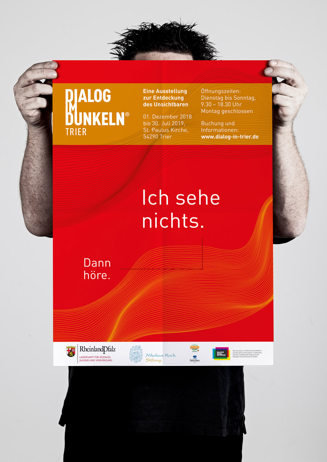 Der Hauptsitz von „Dialog im Dunkeln“ befindet sich in der Speicherstadt, Hamburg. Der Gründer des Vereins Prof. Dr. Andreas Heinecke fühlt sich bereits seit 1989 angetrieben, sein Plädoyer für Akzeptanz für blinde Menschen in die ganze Welt zu tragen. Neben Ausstellungen in Städten wie Singapur oder Melbourne gibt es inzwischen Ausstellungen in mehreren Städten Deutschlands. Seit 2018 soll auch Trier als Ausstellungsstandort etabliert werden. Nach einer Anfrage seitens „Dialog im Dunkeln“ wurde von Dipl.-Des. Till Neuer ein Team von Studierenden der Fachrichtung Kommunikationsdesign an der Hochschule Trier zusammengestellt und betreut, um die vorliegende Aufgabenstellung zu lösen.
